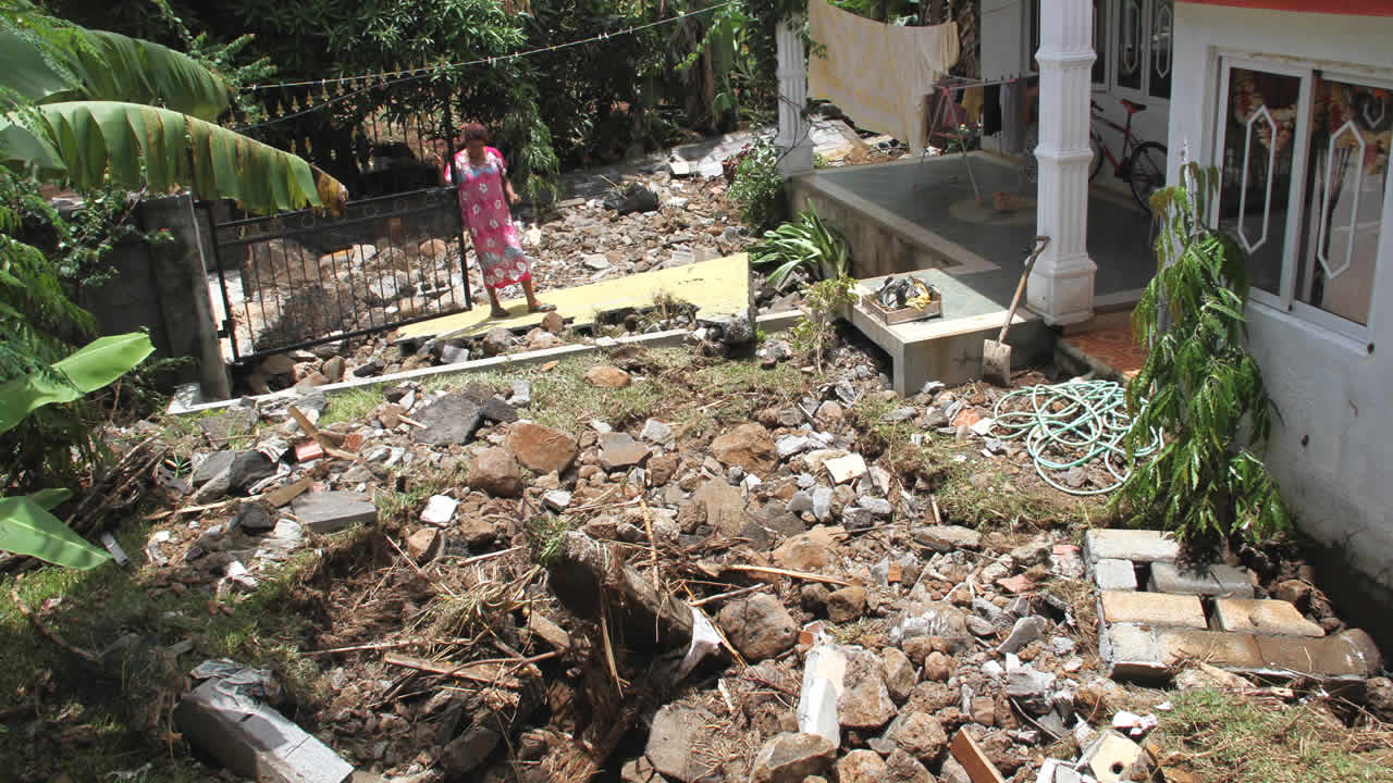 Comment, en si peu de temps, la petite localité, où vit une trentaine de familles, a-t-elle été livrée, impuissante, à la rage des précipitations ? À Fond-du-Sac, tout le monde pointe du doigt un seul et même coupable : les champs de canne, déjà responsables des inondations de 2013. Ces champs surplombent légèrement la localité et il suffit d’une grosse pluviométrie pour que les terres soient saturées. Dès lors, on comprend la facilité avec laquelle les eaux ont fondu sur les terres en contrebas. Lorsque les premiers flots ont commencé à envahir la ruelle, ils ont buté sur un mur séparant deux cours. Leur vigueur a vite eu raison de cet obstacle. Le passage des eaux a laissé un trou béant.
