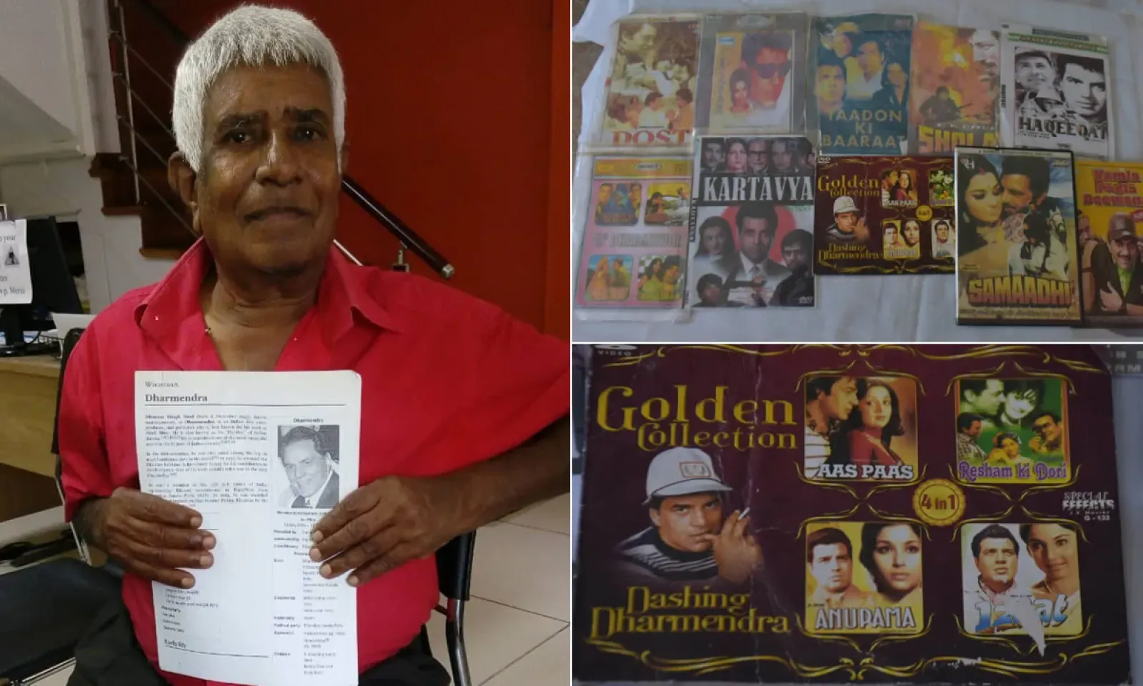 Si le septuagénaire ne l’a jamais vu en chair et en os, par contre Dharmendra lui a répondu quand il lui a écrit une lettre pour lui exprimer son admiration. Non seulement Dharam lui a répondu, mais il lui a aussi envoyé une photo. Il se rappelle qu’en 1975, le père de Dharmendra était venu à Maurice à l’occasion de la World Hindi Conference organisée au Dayanand Anglo-Vedic College (DAV).