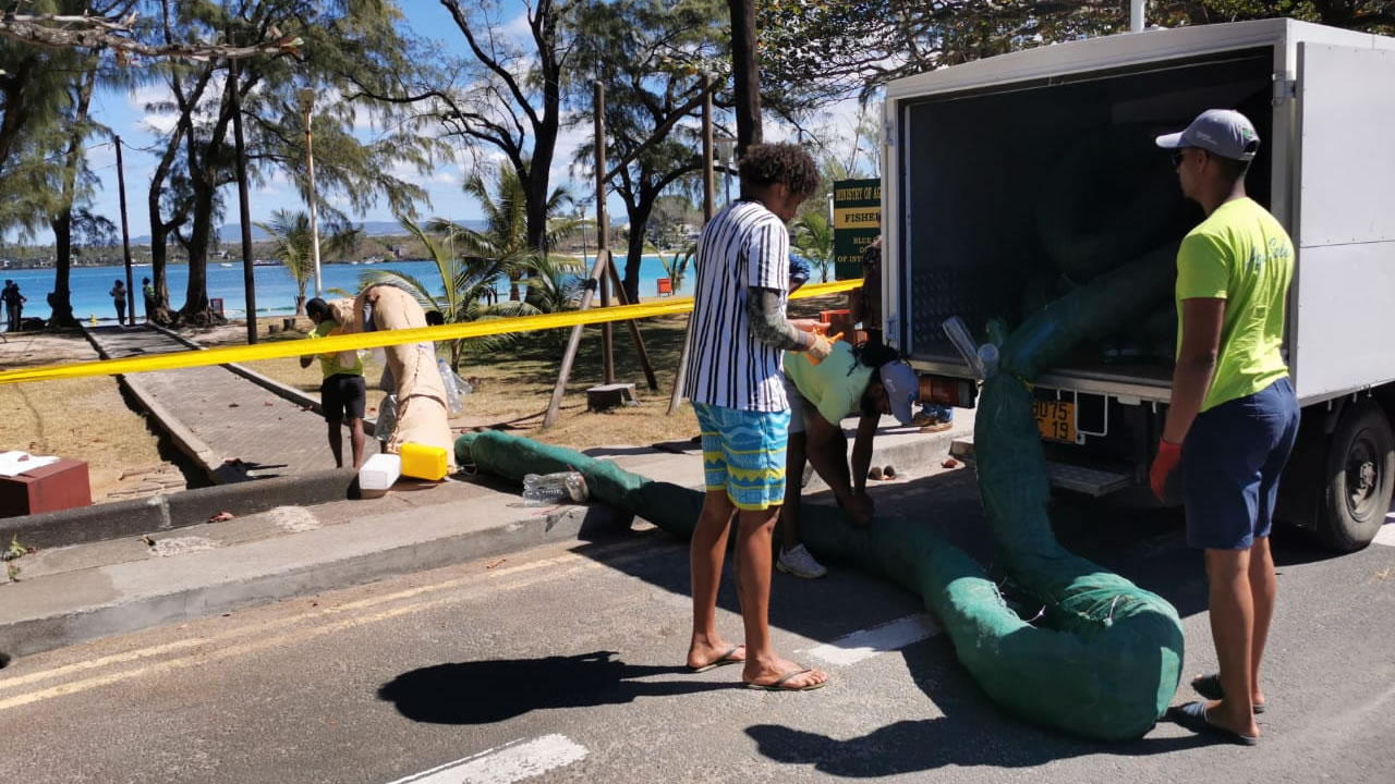 Depuis ce matin à Blue-Bay, ils sont sur le qui-vive. Volontaires, ONG, experts et autorités guettent la nappe d’hydrocarbure qui se rapproche dangereusement du parc marin, cette zone riche en coraux, en poissons et autres espèces uniques au monde. Du coup, la mobilisation est plus que jamais cruciale. Tous s'efforcent de placer au plus vite des barrages flottants pour stopper la propagation d’huile lourde.
