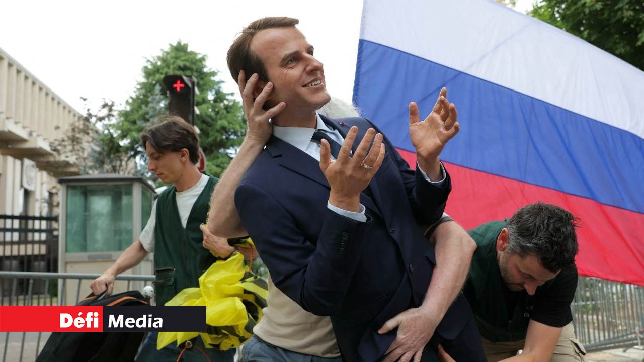 La statue en cire d'Emmanuel Macron a été dérobée au musée Grévin lundi à Paris par des militants de Greenpeace qui l'ont ensuite déposée devant l'ambassade de Russie, en signe de protestation contre les liens économiques de la France avec la Russie.