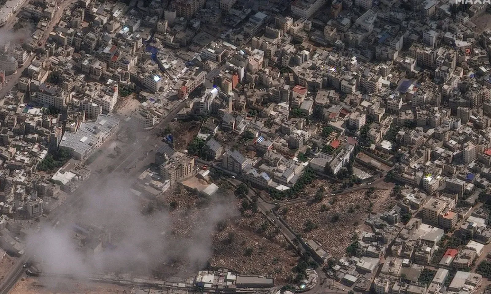 L'imagerie satellitaire du complexe hospitalier avant et après le tir, publiée mercredi par la société Maxar Technologies, "révèle une probable zone d'impact sur le parking principal", mais sans "aucun dommage structurel significatif" sur les bâtiments adjacents.