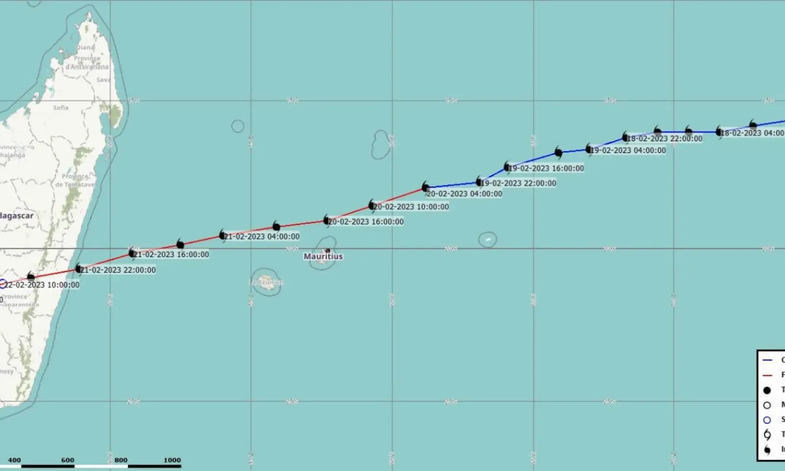 « Sur cette trajectoire, Freddy continue de s'approcher dangereusement de Maurice et représente une menace directe pour l'île. Freddy pourrait passer à environ 120 km au nord-nord-ouest de Maurice à son point le plus proche de l’île, tard cet après-midi », indique la station météorologique de Vacoas dans son neuvième bulletin de cyclone émis à 10 h 10 ce lundi.