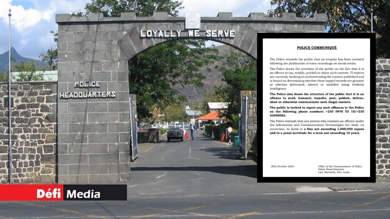 Des experts en informatique tentent d’établir si les conversations téléphoniques de personnalités politiques, de journalistes, d’avocats, du Commissaire de police et d’un juge ayant fuité sur les réseaux sociaux sont authentiques ou altérées à l’aide de l’intelligence artificielle. C’est ce qui ressort d’un communiqué émis par la police ce dimanche. Elle met en garde que le partage de ces contenus est illégal et rappelle que toute infraction à l’ICT Act est passible d’une peine de prison maximale de 10 ans et d’une amende pouvant aller jusqu'à Rs 1 million. La police invite également le public à rapporter tout cas au 5 9765318 ou au 5 2595083.