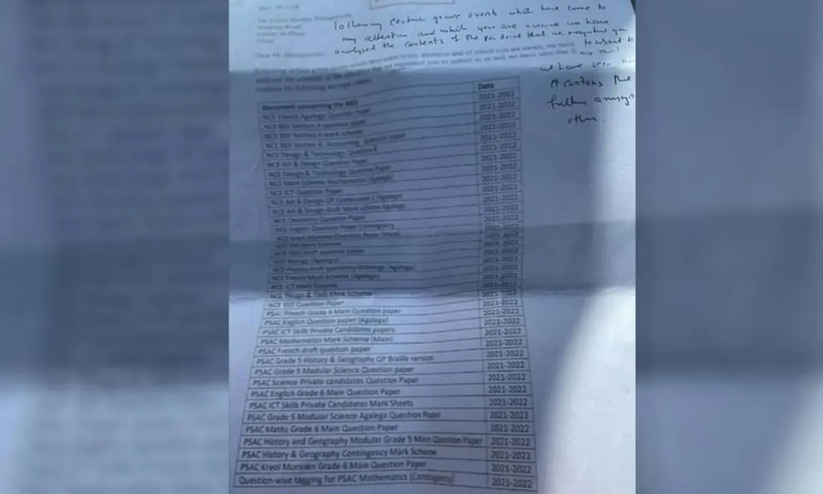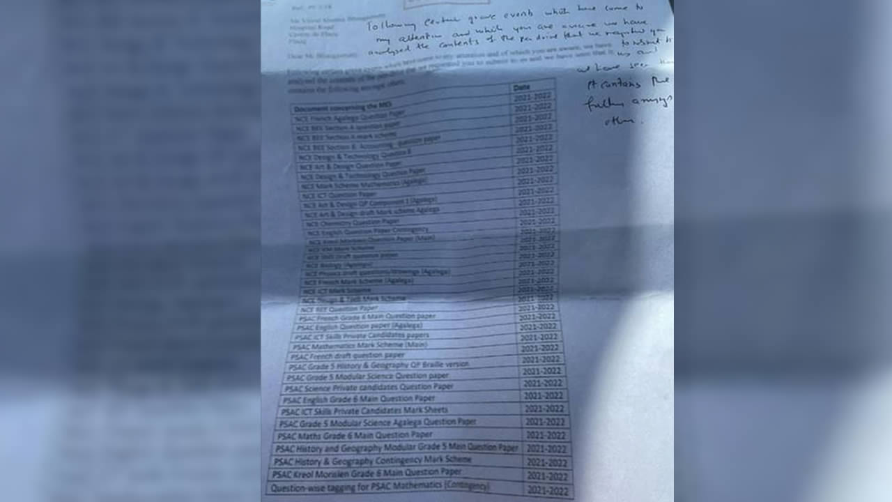 Le MES a envoyé une lettre de suspension avec effet immédiat à cette personne. Dans celle-ci, il est question d’une clé USB qui contenait des informations concernant les examens du Primary School Achievement Certificate (PSAC) pour le mois d’août. Il y avait aussi des données qui ont trait aux examens du National Certificate of Examination (NCE).
