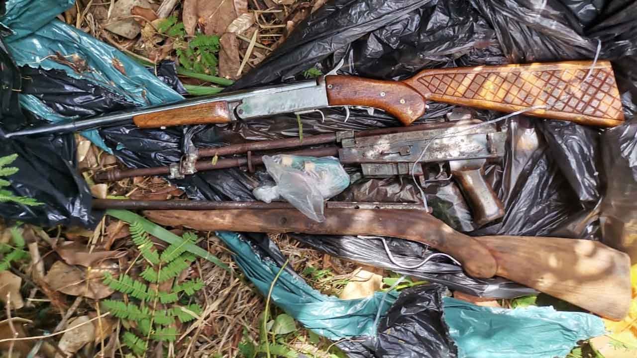Sur le coup de 10 h 30, les agents de l’ADSU de Rose-Hill se sont mobilisés à Pierrefonds, Beaux-Songes. Dans un premier temps, les policiers ont barricadé le périmètre pour le besoin d’une fouille minutieuse aux abords de la rivière, dans un terrain en friche. Dans un endroit, la présence de feuilles sèches couvrant des sacs a éveillé les soupçons des policiers. Ceux-ci ont procédé à une vérification plus approfondie des lieux. C’est ainsi qu’ils sont tombés sur un gros sac fait en raphia. En ouvrant le sac, qui portait l’enseigne d’une marque de riz basmati, le constat a été des plus choquant pour les policiers. Trois fusils découverts, dont deux fusils de chasse, ainsi qu’un semi automatic gun de la marque Adler, de calibre .22. Dans un sac sur place, 11 cartouches de calibre 12 mm, dont 7 de la marque Rotelle Germany et 4 de la marque Winchester. 16 cartouches qui se trouvaient dans un autre sac ont été saisies. Parmi, la police soupçonne la présence de balles de calibre .25.