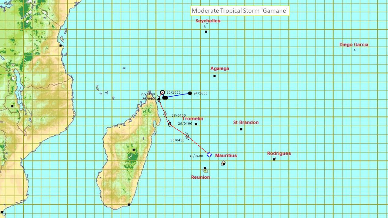 Un mouvement vers le sud pourrait rapprocher Gamane de Maurice à partir de ce jeudi. Le système devrait encore s’intensifier, selon la station météo de Vacoas. La tempête tropicale modérée Gamane représente ainsi une menace potentielle pour Maurice.