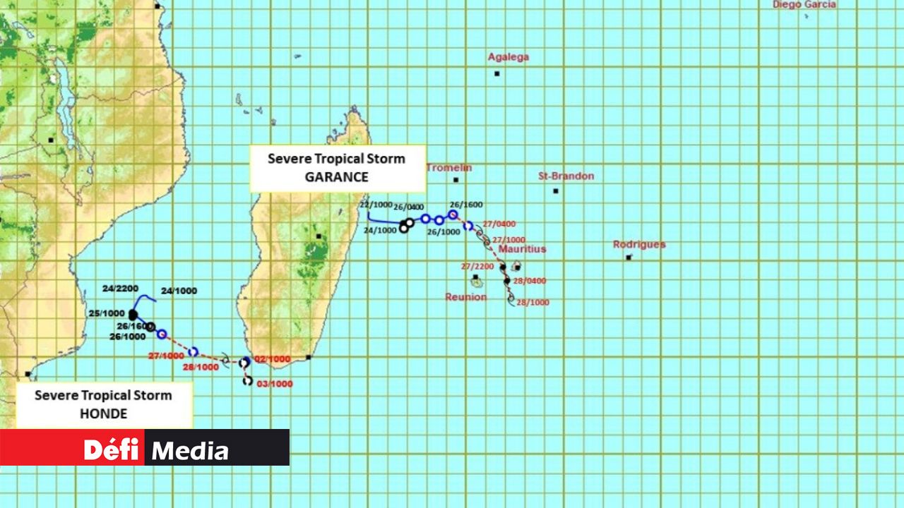« À 22 h 00, la forte tempête tropicale Garance était centrée à environ 375 km au nord-ouest de Maurice, soit en latitude 17,9 degrés sud et longitude 54,7 degrés est. Elle se déplace vers l'est à environ 10 km/h », selon le service météorologique.