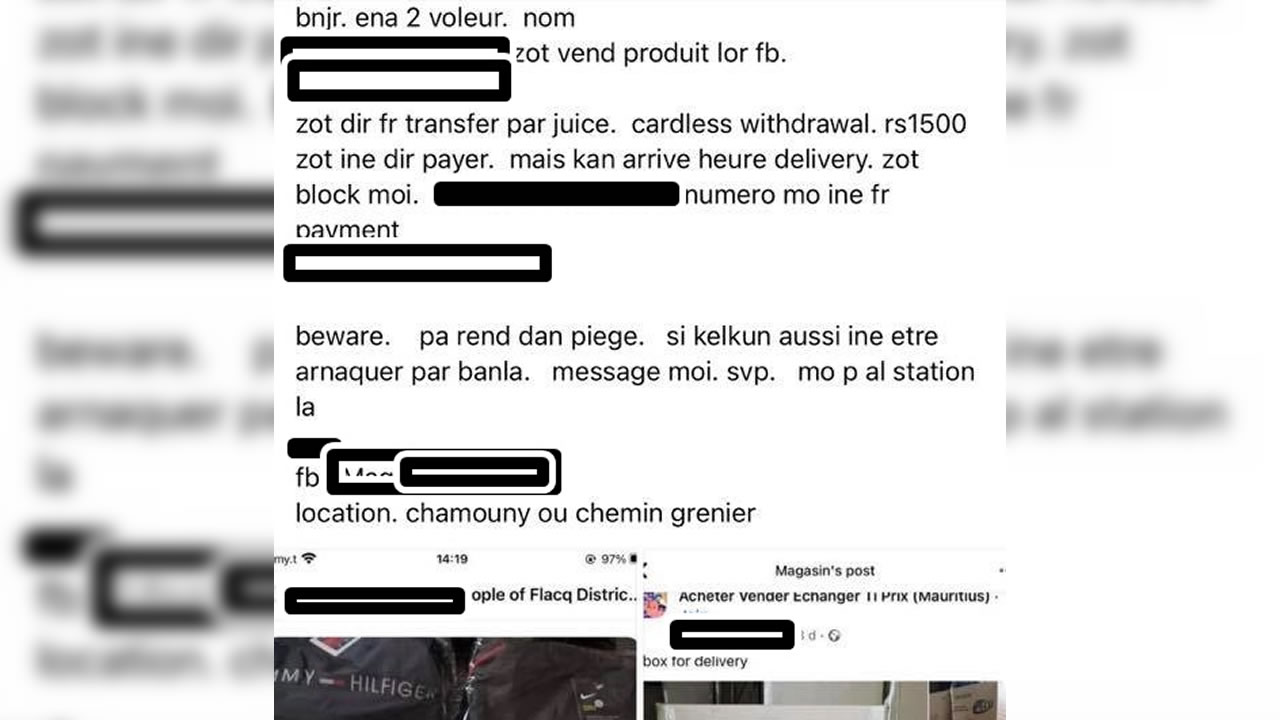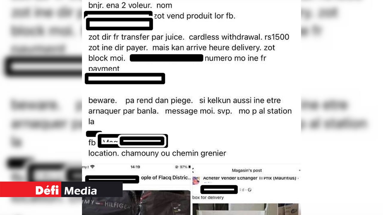 Ce type d’arnaque est très fréquent sur Facebook. Nombre de victimes ne cessent de poster des alertes pour se plaindre qu’elles n’ont jamais reçu leurs commandes. « Zot vann prodwi lor fb, zot dir fer transfer par juice, me kan ariv ler delivery zot blok mwa, beware », a averti un Facebooker.