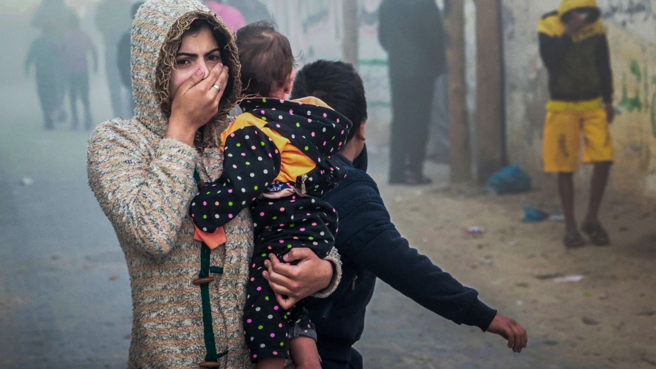 Mossaab a le visage couvert de blessures et la jambe amputée. Abboud a un tuyau de plastique qui lui sort du ventre. Il "ne sait pas que sa mère, sa grand-mère et plusieurs de ses frères sont morts", dit-elle entre deux sanglots.