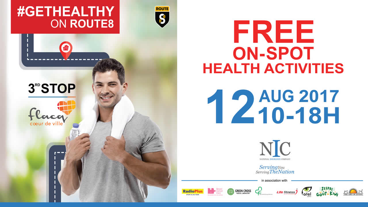 La National Insurance Company (NIC) entame sa troisième campagne « #GetHealthy on Route8 », avec sa caravane de santé à Flacq Cœur de Ville, le 12 août de 10 heures à 18 heures.