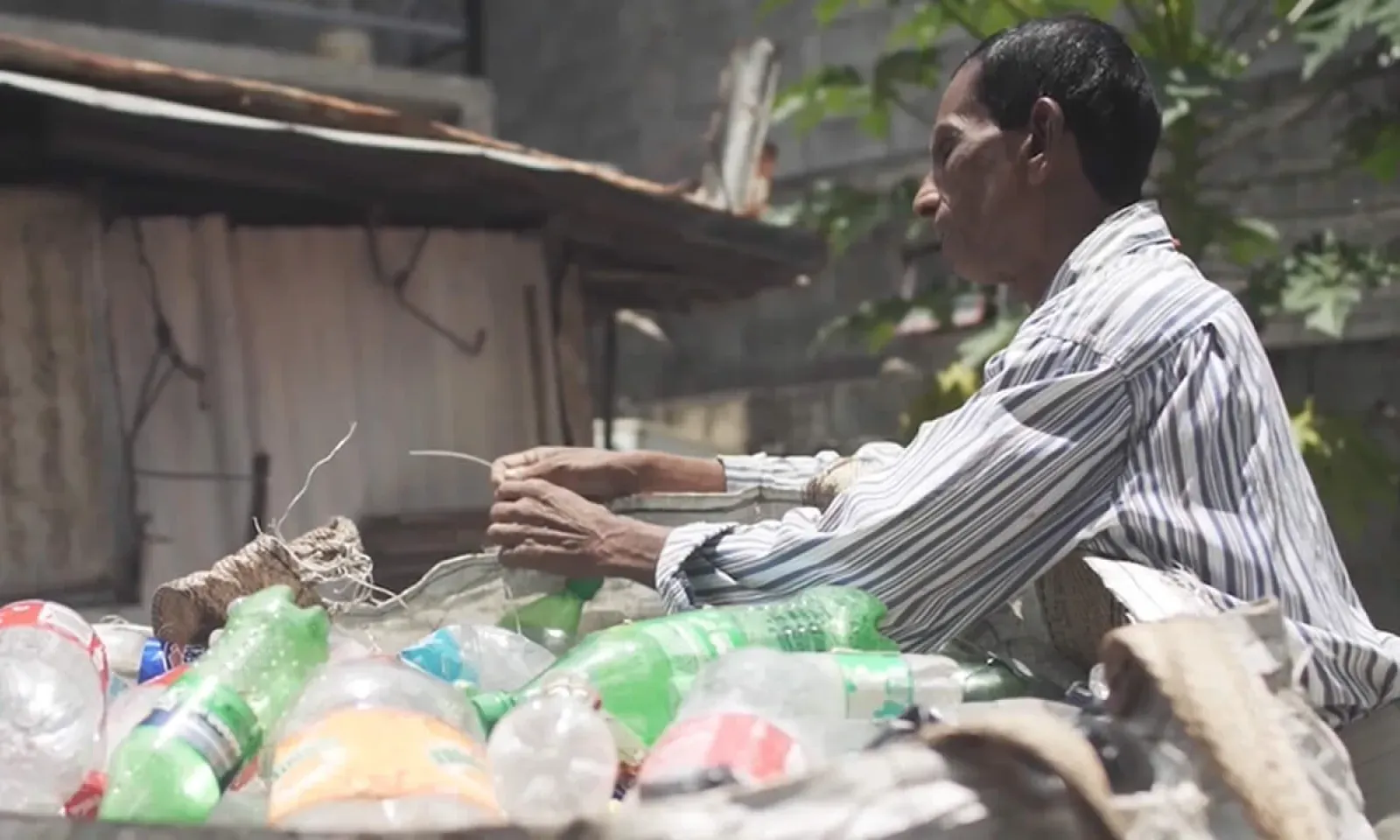 Depuis trois ans, Giandev ramasse, tous les jours, sans faute, des bouteilles en plastique sur les plages et les bordures de route, de son plein gré, après le travail. Il remplit six sacs par semaine qu’il remet ensuite à une usine. Chaque fin de semaine, le camion de l’usine vient récupérer les bouteilles en plastique.