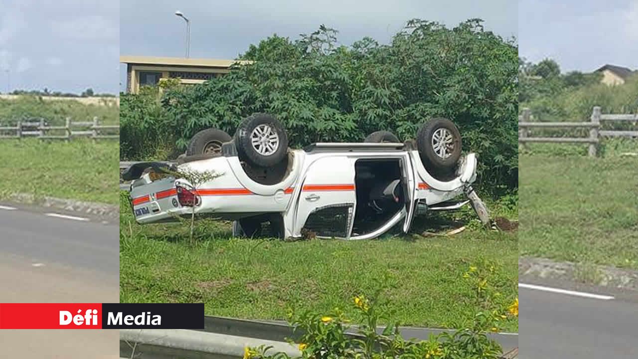 Un véhicule de la police avec à son bord trois officiers a fait une sortie de route mardi 8 mars pour se retrouver sens dessus dessous à Goodlands.