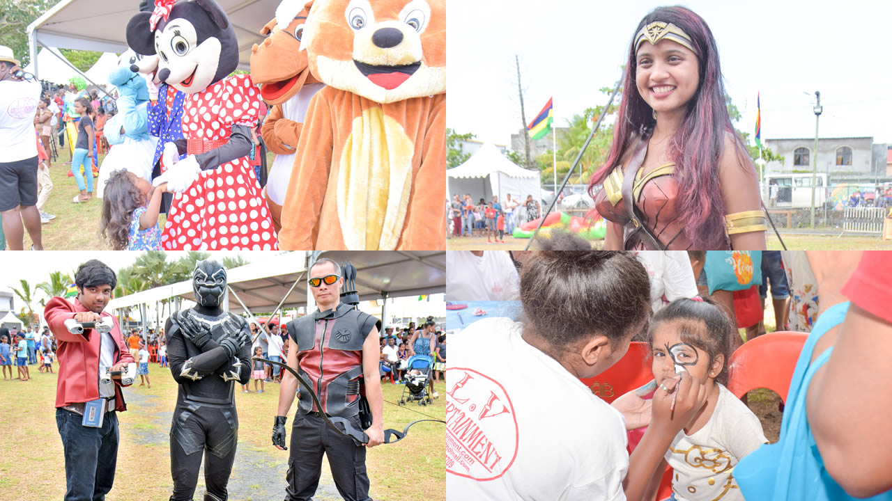 Quelques artistes locaux dont Lindsay Veerapen et le groupe Abaim, le Groupe Réfugiés Chagos, des personnages du monde de Walt Disney et les héros des séries des années 80 étaient tous là pour offrir un moment inoubliable aux enfants. En images les moments de joie pour ces enfants.