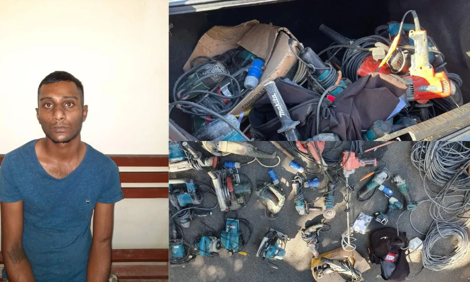 Lors d'un contrôle, les agents ont découvert dans le coffre de la voiture des broyeuses, des scies électriques, des perceuses, des câbles électriques, entre autres. Le conducteur, un certain Abdool Fawwaaz Powtoo âgé de 31 ans, a été arrêté. Lors de son interrogatoire, cet habitant de Terre-Rouge a avoué avoir volé ces équipements sur un chantier en construction à Grand-Baie. Il a été placé en détention policière sous une accusation provisoire de vol.