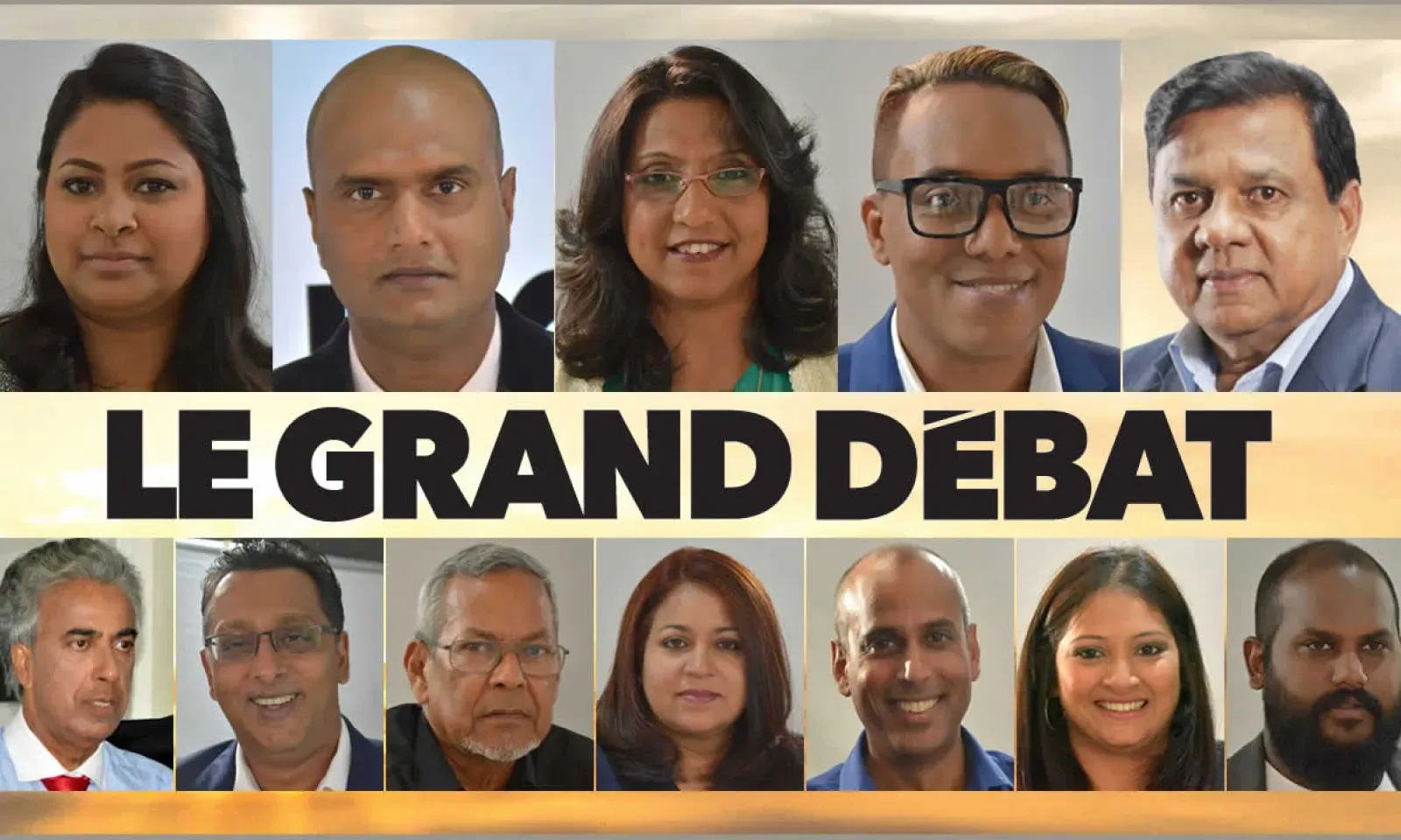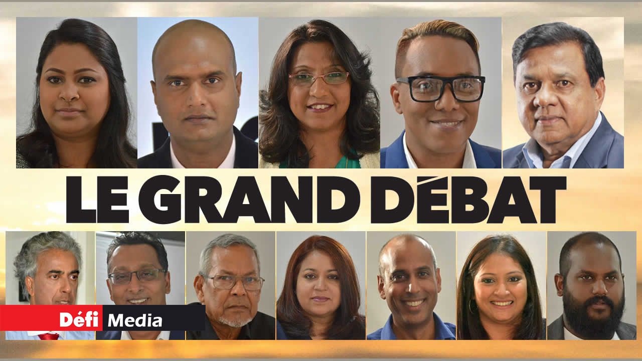 Roshi Bhadain du Reform Party, Arvin Boolell du Parti travailliste, Nita Juddoo du MMM, Tania Diolle du Mouvement patriotique, Jack Bizlall du Mouvement 1er-Mai, Kugan Parapen de Rezistans ek Alternativ et Dhanesh Maraye du PMSD se sont affrontés en direct ce jeudi après-midi sur le plateau du Défi Media Group, au Palms Hotel à Quatre-Bornes.