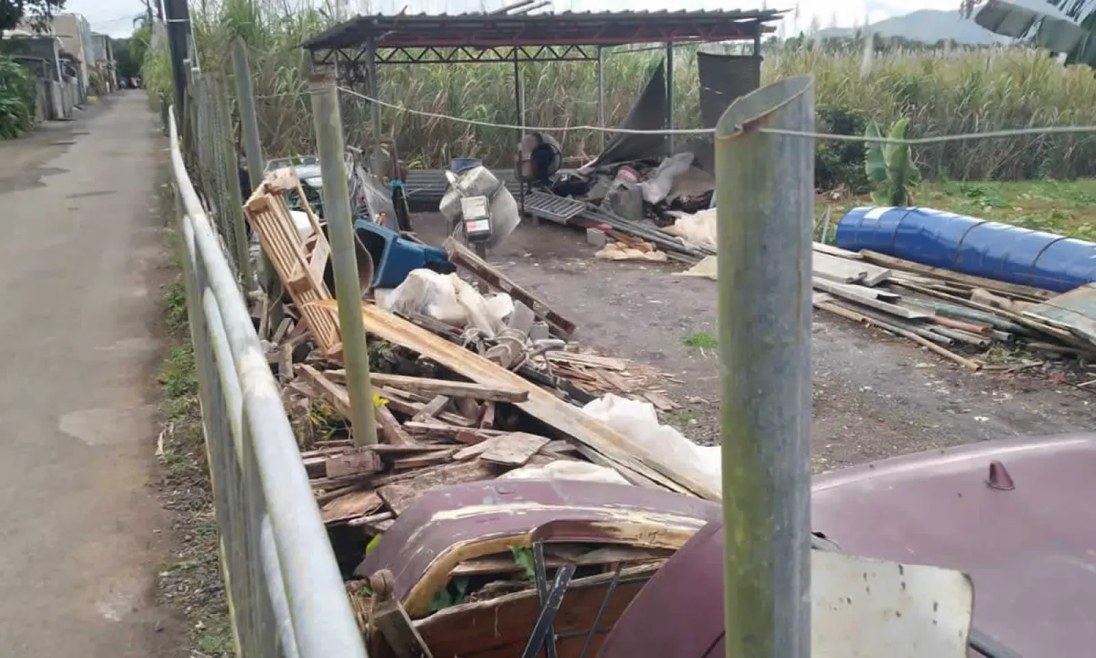 Un voisin s’est approprié illégalement un terrain appartenant à l’État pour y entreposer une multitude de matériaux : bois, ferraille, tôles usagées, mobilier abandonné et divers