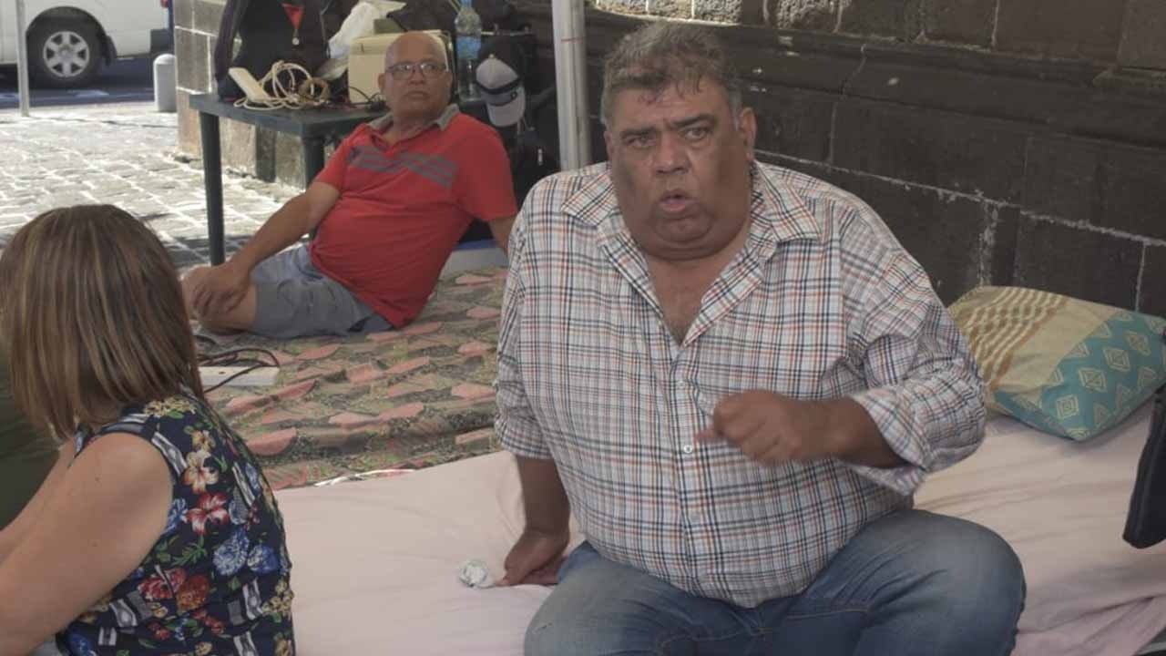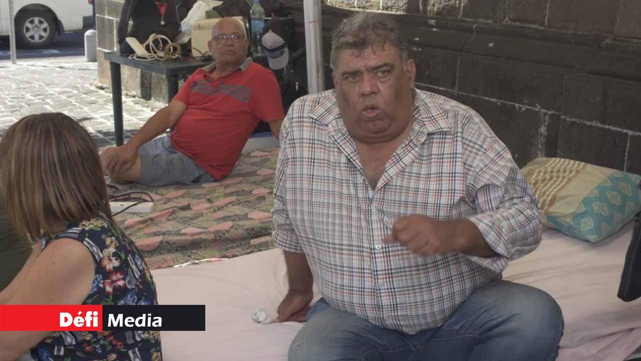 Le porte-parole de l’association Justice, Réparation et Restitution est accompagné de deux autres membres de cette association dans cette grève de la faim sur le parvis de l’église Immaculée Conception à Port-Louis. Clency Harmon réclame la création d’une Land Court, dédiée aux cas d'expropriation de terres.