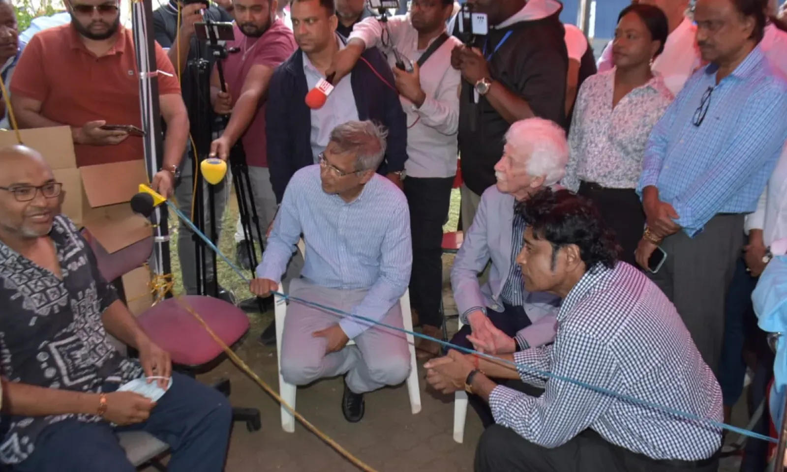Les dirigeants de l’Entente de l’Espoir à savoir, le leader de l’opposition et leader du PMSD, Xavier-Luc Duval, le leader du MMM, Paul Bérenger et le leader du Rassemblement Mauricien (RM), Nando Bodha ont rendu visite au gréviste Nishal Joyram ce jeudi après-midi 24 novembre.
