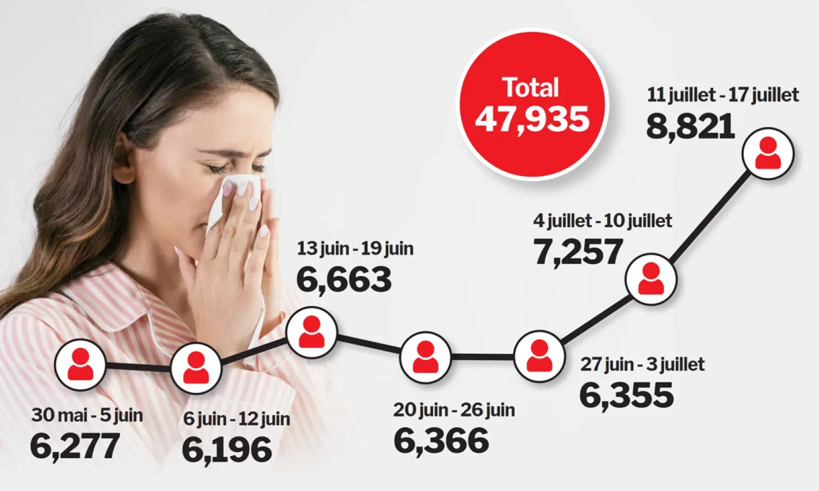 Le nombre de cas de grippe et d’infections respiratoires aiguës a évolué crescendo. Le chiffre hebdomadaire, de 6 277 au début du mois de juin, est passé à 8 821 pour la troisième semaine de juillet. 22 433 cas de grippe et d’infections respiratoires aiguës ont été recensés dans les hôpitaux régionaux depuis le début du mois de juillet. Ce qui représente une hausse considérable par rapport aux hivers précédant la période de la pandémie de Covid-19. Outre la baisse de température, une plus faible exposition aux virus de la grippe expliquerait cette augmentation du nombre de cas, selon le Dr Fazil Khodabocus, médecin en santé publique.