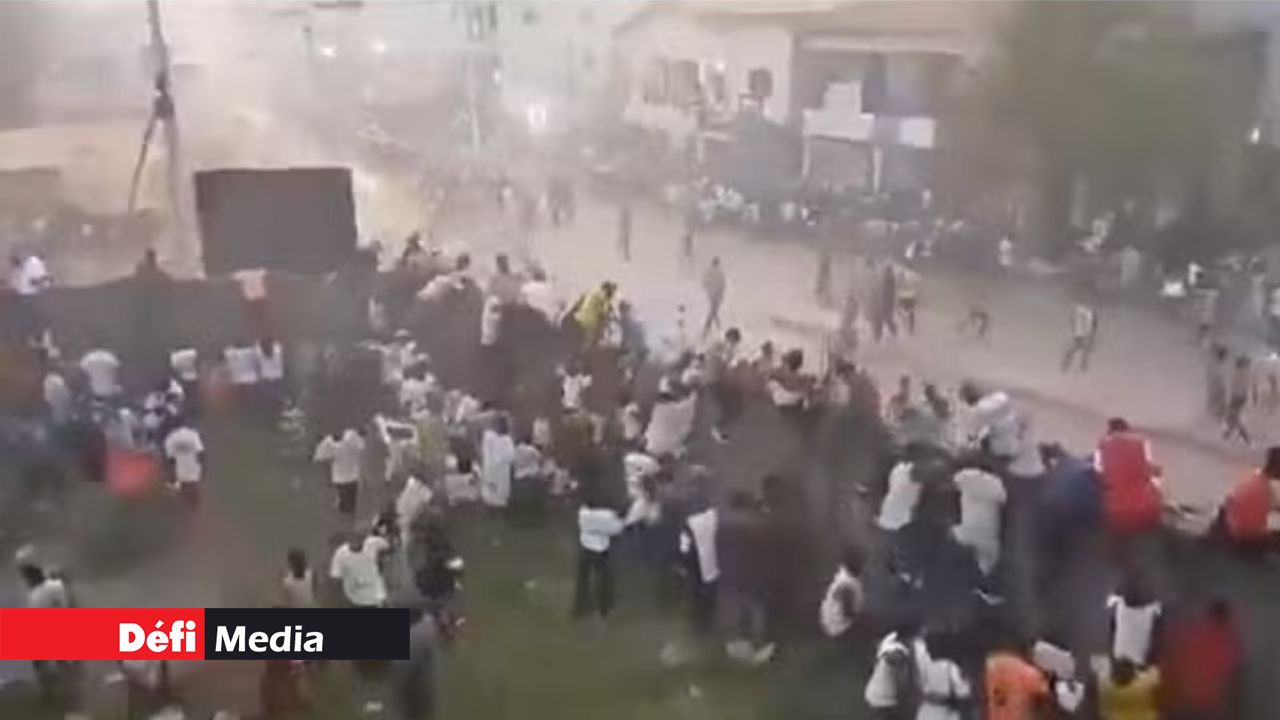 Des vidéos circulant sur les réseaux sociaux montrent des scènes de grande confusion, avec des personnes escaladant ce qui semble être les murs d'enceinte du stade pour s'en échapper, d'autres prenant la fuite en courant dans des nuages de poussière ou de gaz.
