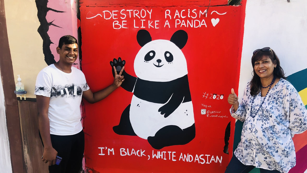 En 2020, Hajrah et Wazeerudeen ont dessiné une fresque au cœur de Chinatown, avec pour message contre le racisme.