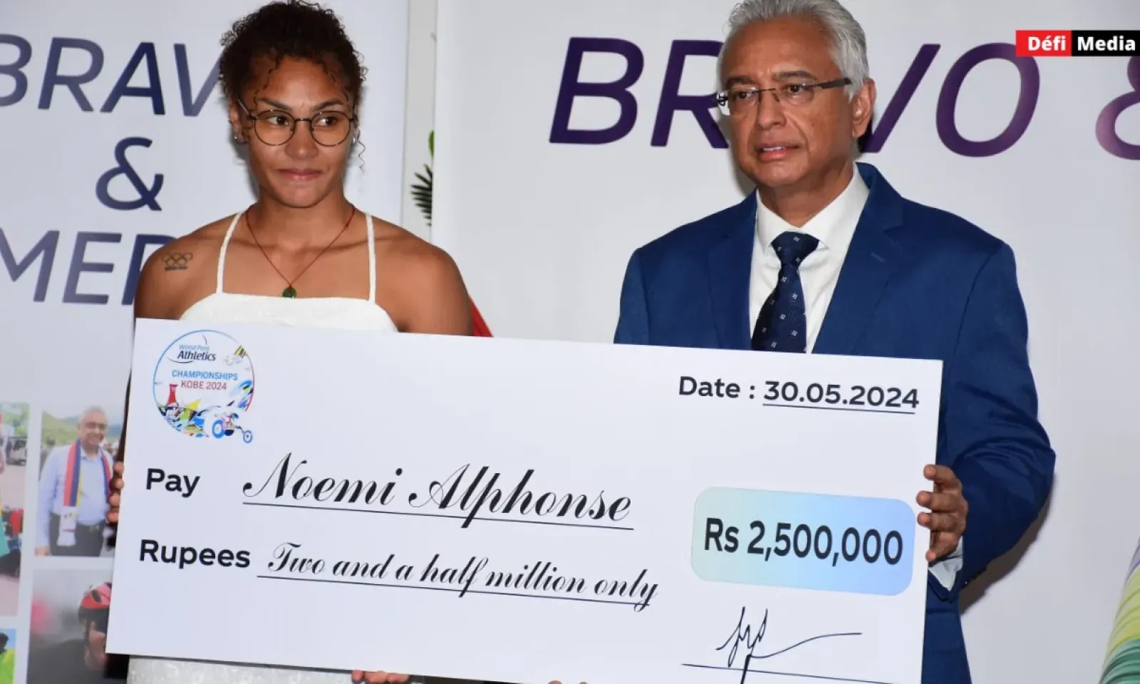 Leurs efforts ont été récompensés ! Noemi Alphonse a reçu, des mains du Premier ministre, Pravind Jugnauth et du ministre des Sports Stephan Toussaint, un chèque de Rs 2,5 millions et Anaïs Angeline un chèque de 1 million.