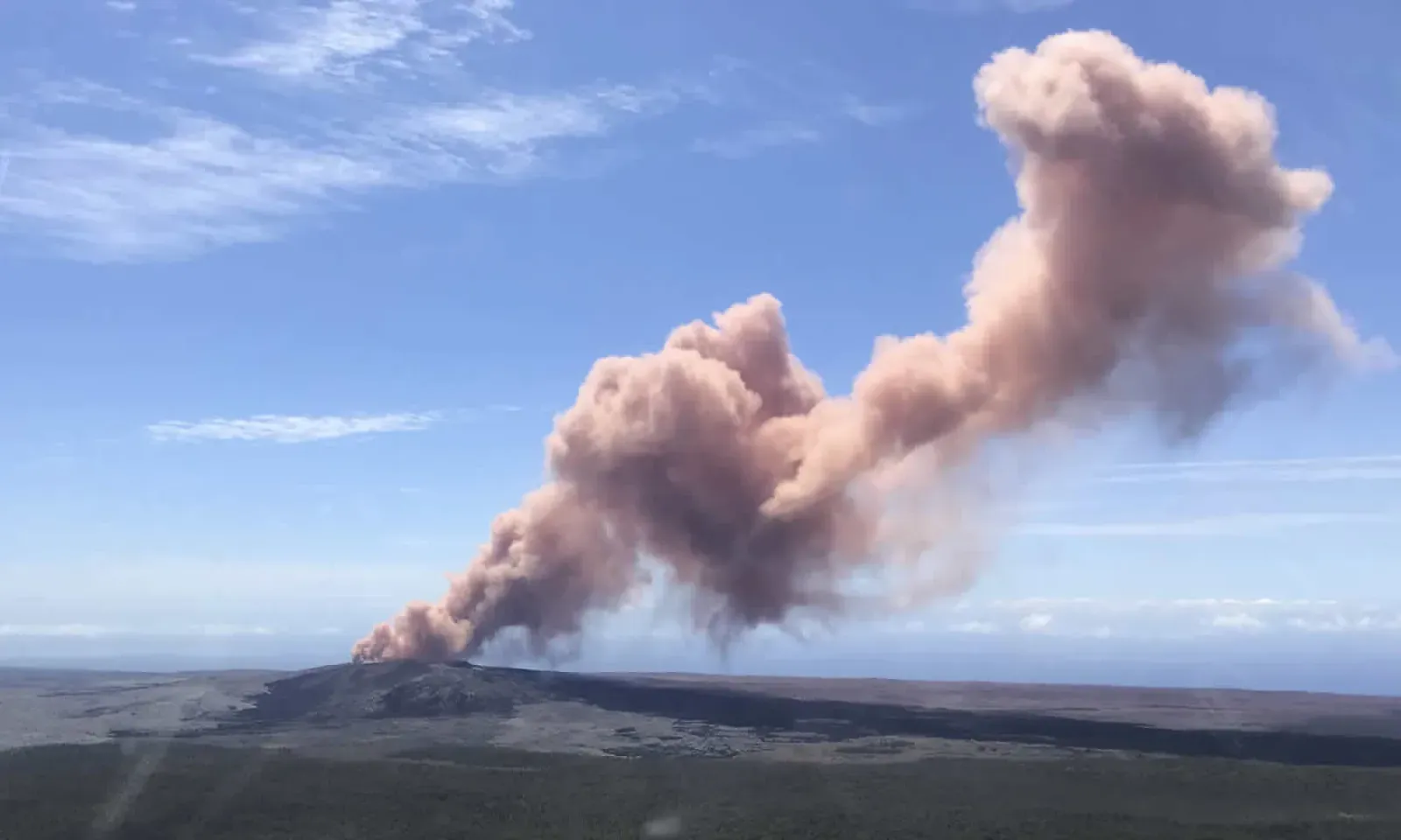 Les autorités d'Hawaï ont diffusé une photo montrant un immense jet de cendres rosâtres jaillir du volcan et se dissiper en se déplaçant vers le sud-ouest du cône volcanique Puu Oo. Elles ont prévenu que l'éruption pouvait contenir des "concentrations potentiellement létales de dioxyde de soufre".