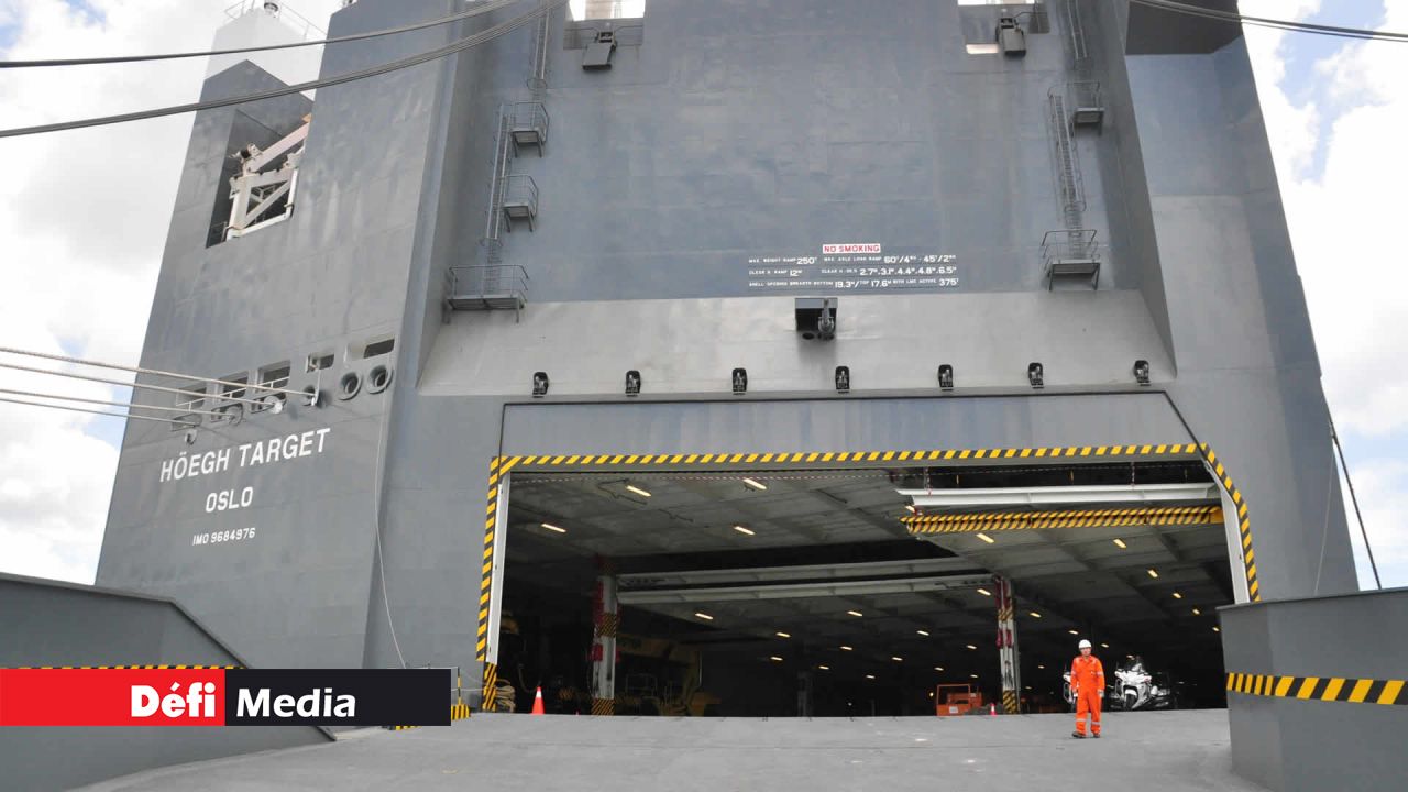Le Mauritius Trochetia fait figure de nain auprès du Hoegh Target de par son imposante présence. Il a fait le déplacement jusqu’à Maurice afin de livrer quelque 200 voitures.