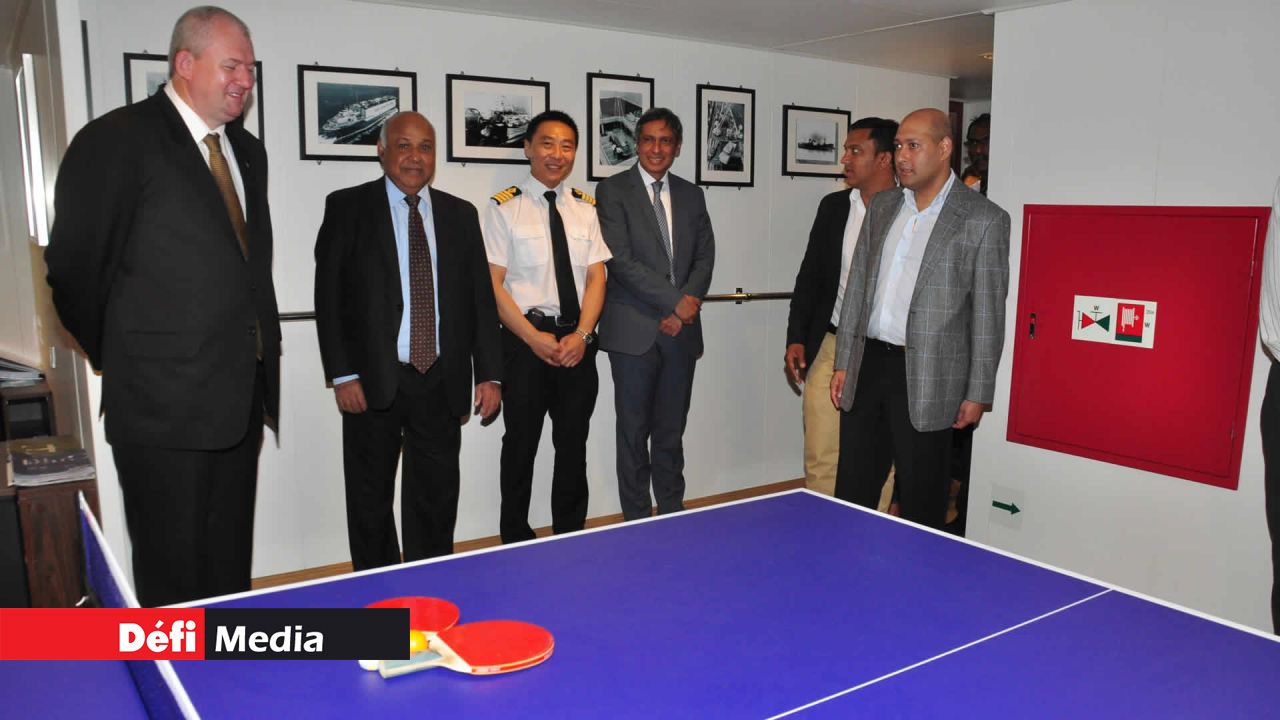 Pour accéder au bateau, nous longeons une rampe de 45 mètres de long. Une fois à bord, un membre de l’équipage nous guide jusqu’à l’ascenseur. Ils sont au moins une trentaine à travailler sur le Hoëgh Target. Direction, le 14ème étage, le plus haut niveau du bateau. C’est aussi là que le ministre du tourisme, Xavier Luc Duval, a rencontré les membres de l’équipage et de la presse. Lors de son discours, il avancera que le passage du roulier chez nous donnera plus de visibilité au pays.