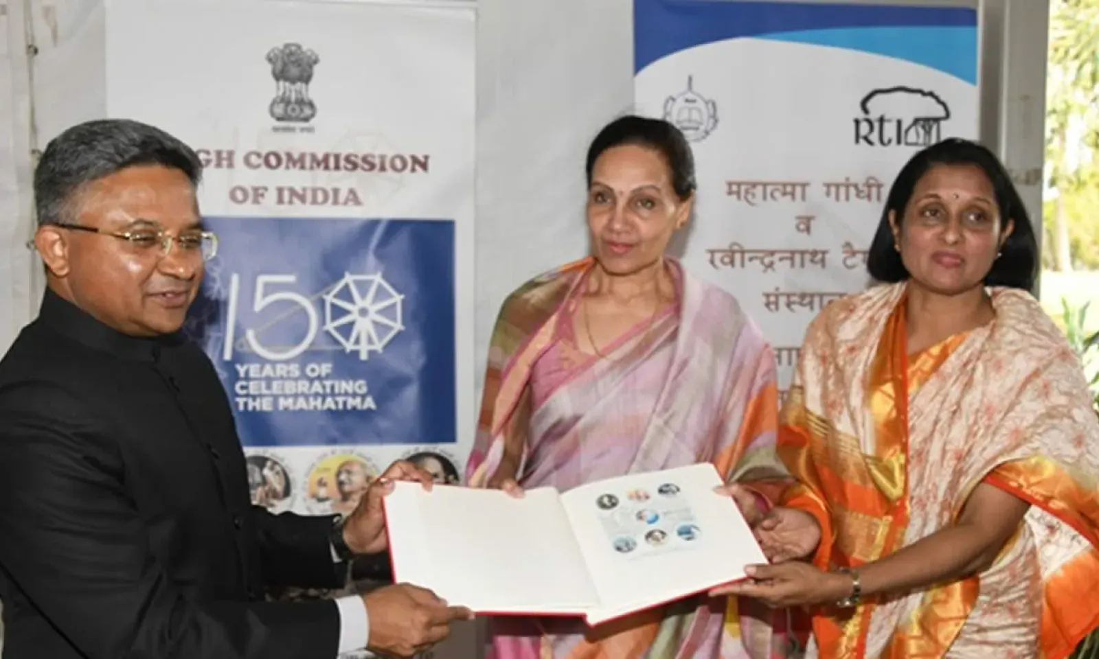 Le 2 octobre, Mahatma Gandhi aurait fêté ses 150 ans. Pour marquer cet événement, le gouvernement indien a lancé des timbres commémoratifs. Abhay Thakur, haut-commissaire indien à Maurice, a présenté ces timbres à quatre Mauriciens. Ils sont Vijaye Busawon, président du conseil de district de Moka, J. Meetoo, président du MGI, G. Gokhool, Permanent Secretary à l’Éducation, et Soorya Gayan, la directrice générale du MGI. Dans la soirée du mardi 2 octobre, une image de Mahatma Gandhi, affectueusement appelé Bapu, a été projetée sur le bâtiment du haut-commissariat de l’Inde à Port-Louis.