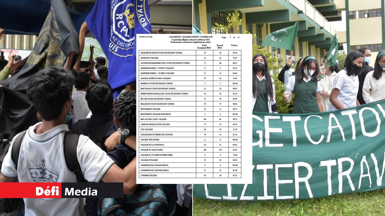 18 établissements affichent un taux de 100 % de réussite. Parmi : Bambous State Secondary School, Bhujoharry College Rose-Belle, College BPS Fatima et Dr Maurice Curé State College.