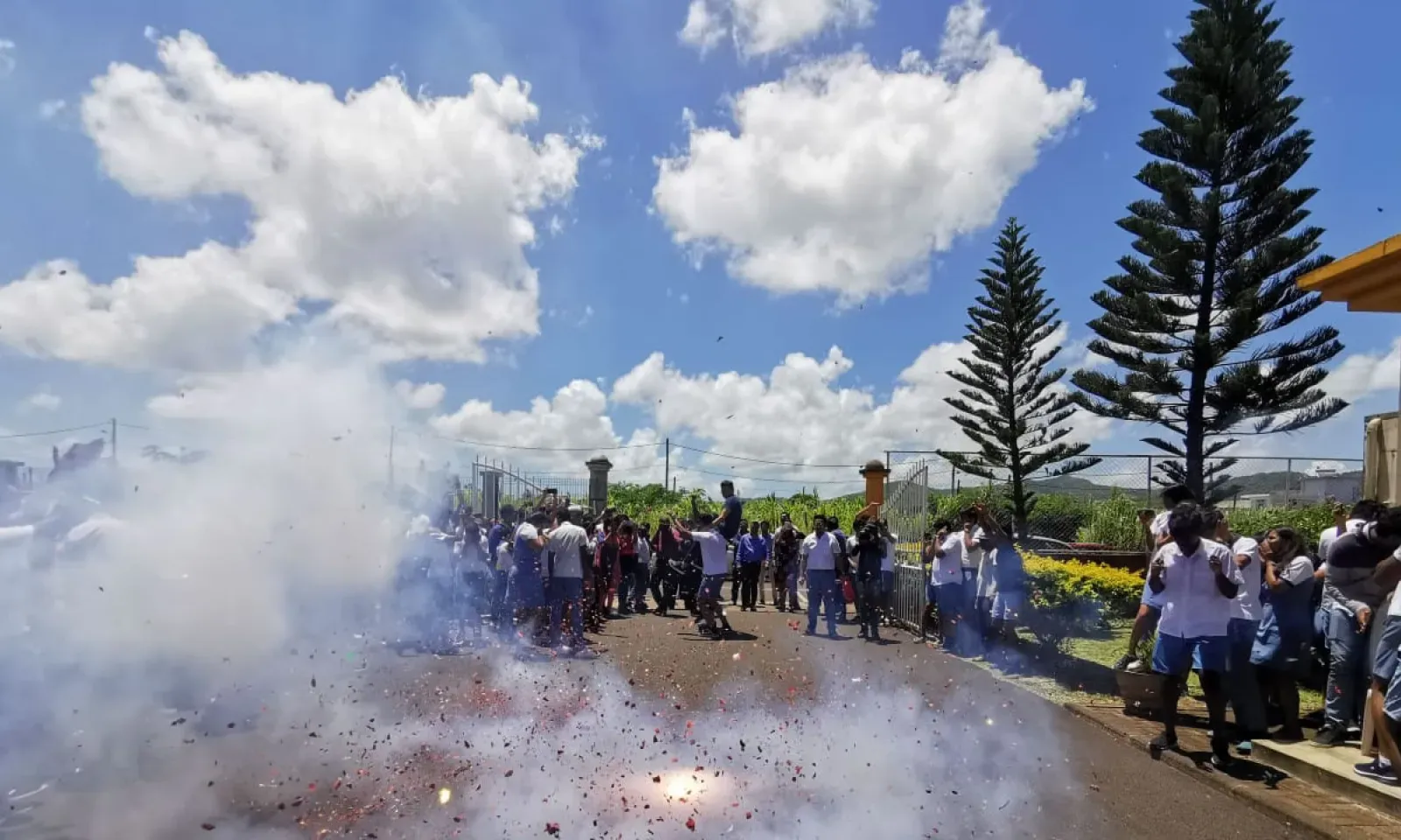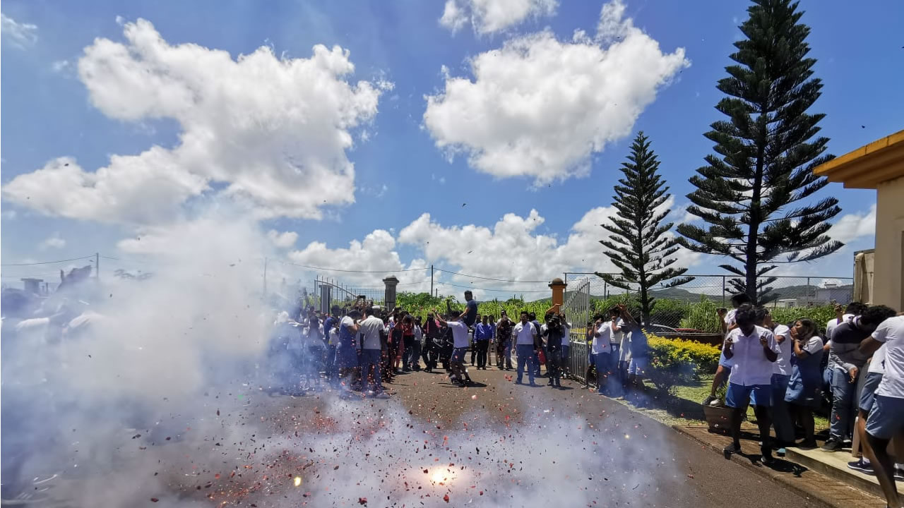6. Les élèves du Collège Dr Maurice Curé rendent hommage à Soondress Sawmynaden, ancien recteur.