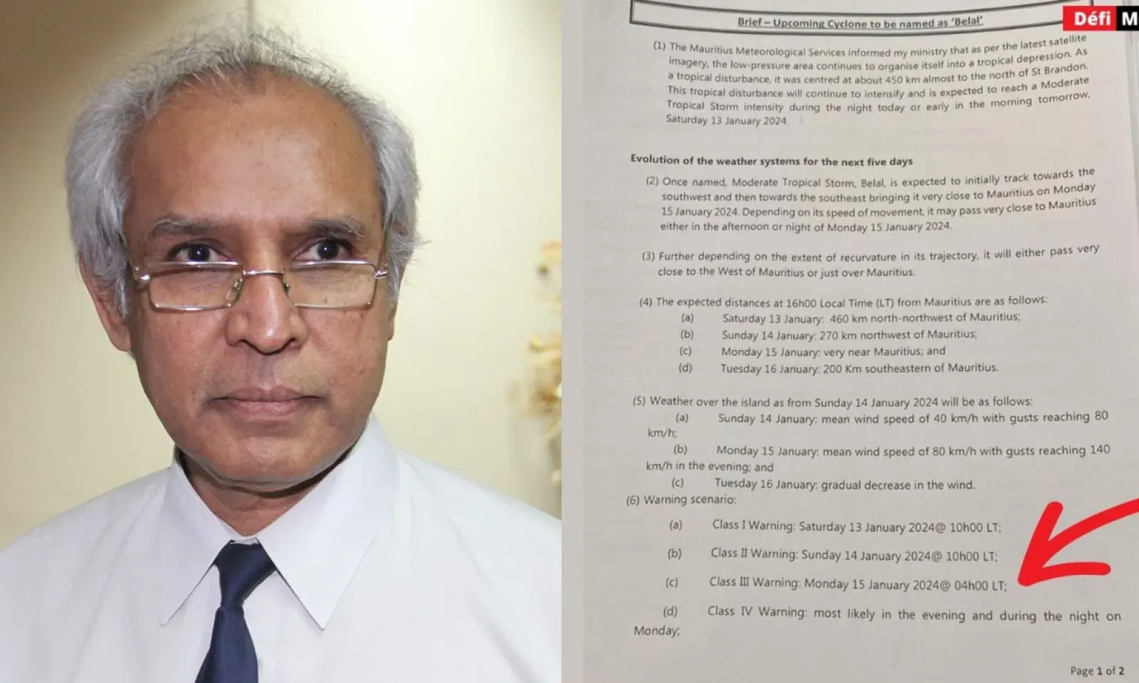 Ce 'brief" fait également état d’un probable avertissement de cyclone de classe 4 dans la soirée de lundi 15 janvier. C’est donc vers 4 h, mardi 16 janvier que le bulletin de sécurité aurait dû être émis.