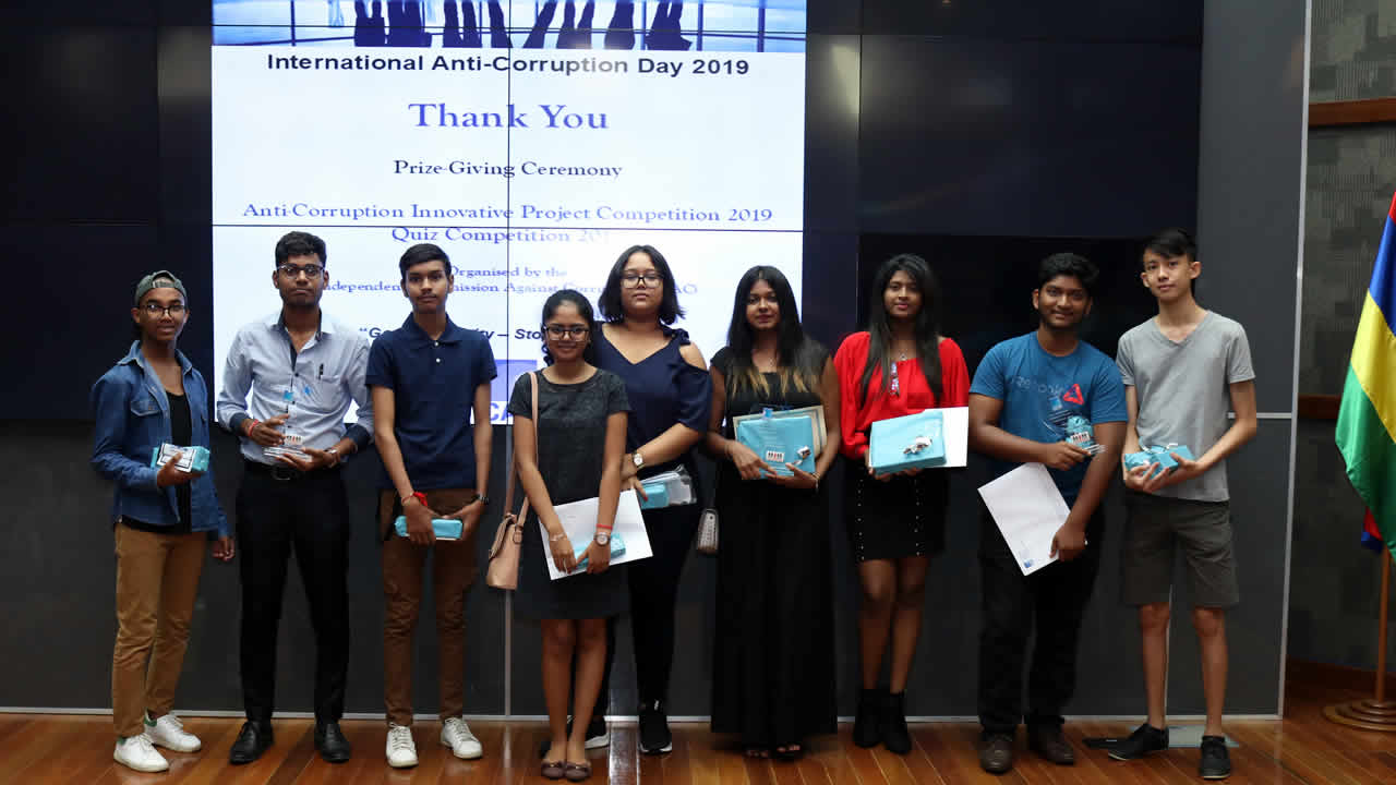 Après délibérations d’un panel de jury indépendant, quatre meilleures entrées ont été identifiées. Ainsi, le premier prix a été décerné à William Chong Wo Yuen et Waliyullah Muntaswir du Dr. James Burty David SSS pour le développement d’une application mobile et d’un site Web. Le deuxième prix a été accordé à Bhavna Seedam et Jayshika Urjoon. Les deux ex-élèves du Mahatma Gandhi Secondary School (MGSS) de Nouvelle-France ont créé, elles, deux jeux de société axés sur la thématique Anti-Corruption. À la 3e place, Kamlesh Kumar Moothen, Narvin Booluck et Jeremy Adrien Lascie du Curepipe Colleg, avec un court-métrage sur la corruption.