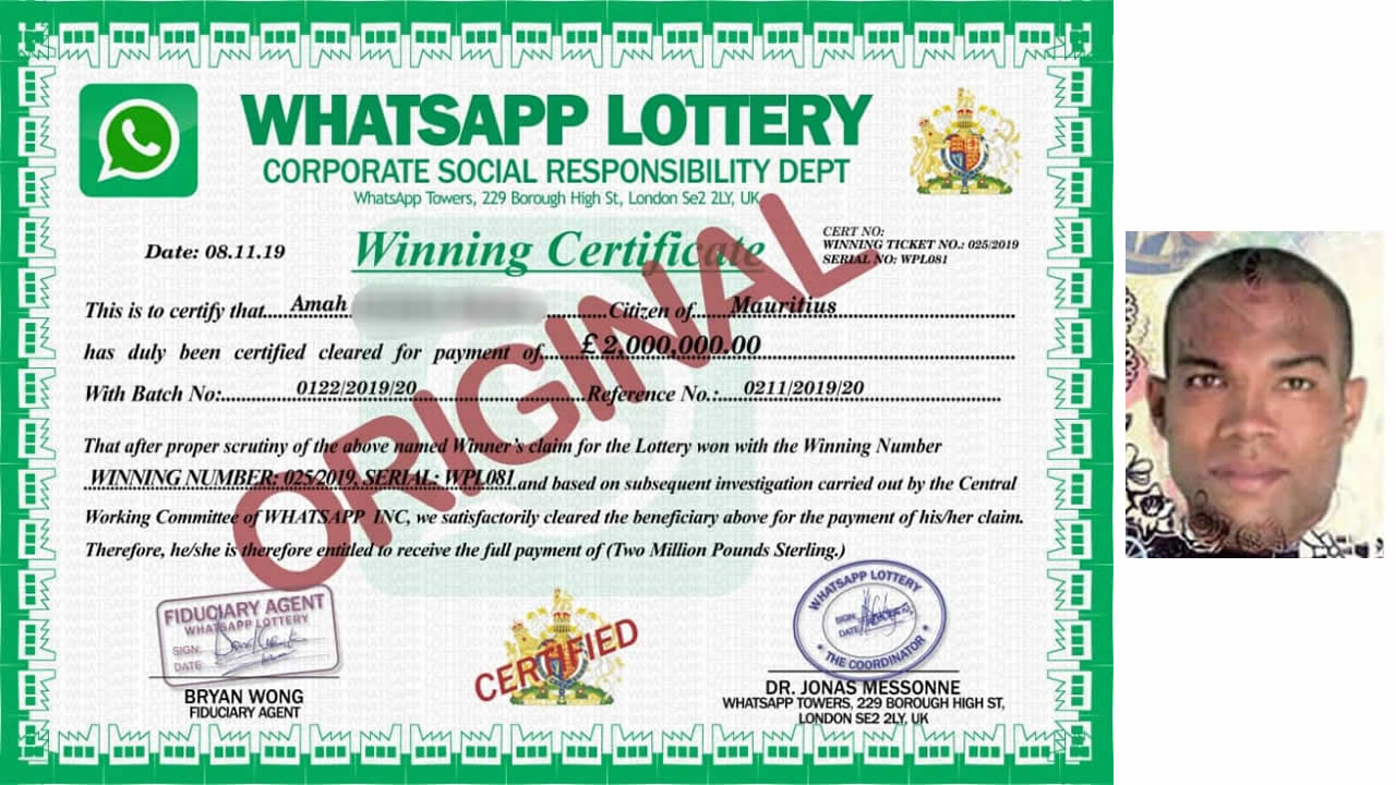 Pour pouvoir participer à la loterie, les procédures consistaient à transférer une somme de Rs 30 000. Ayant complété cette première étape, un nouveau message leur a envoyé annonçant qu’ils avaient gagné et qu’il fallait transférer une nouvelle somme de Rs 27 000 pour les frais d’ambassade et de banque. « Nous sommes tombés dans le piège deux fois, ce qui nous a poussés à transférer une deuxième fois cette somme d’argent, c’est un certificat confirmant notre supposée gain avec l’un de nos prénoms », raconte Amah, complètement dépitée par ce qui s’est passé.