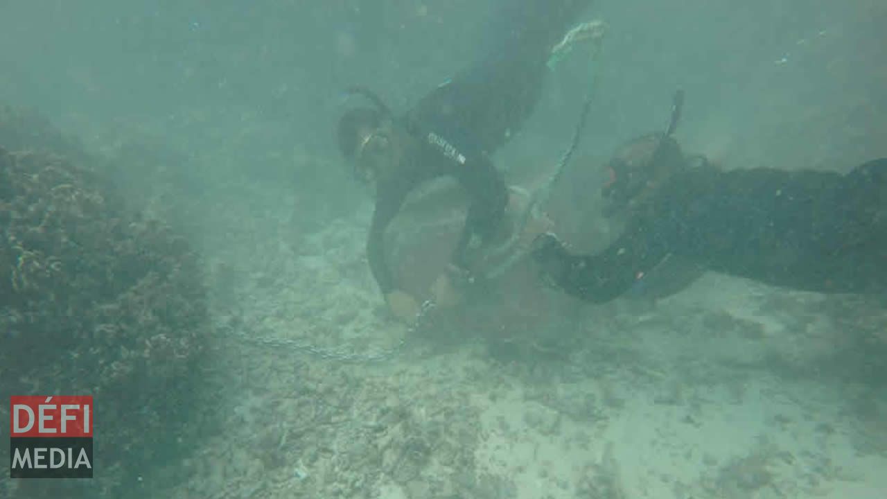 Des éléments de la National Coast Guard (NCG) ont participé ce dimanche matin à une opération délicate près de l'île Plate. Ils ont placé une bouée pour indiquer aux skippers où se situe la passe.