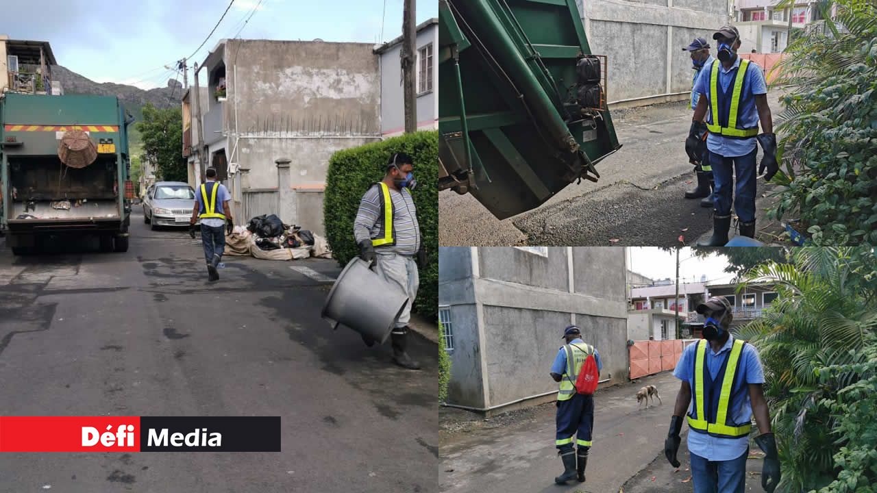 Gants, masques, gilets fluorescents : les éboueurs de la municipalité de Beau-Bassin/Rose-Hill étaient « on duty » ce matin, lundi 30 mars.