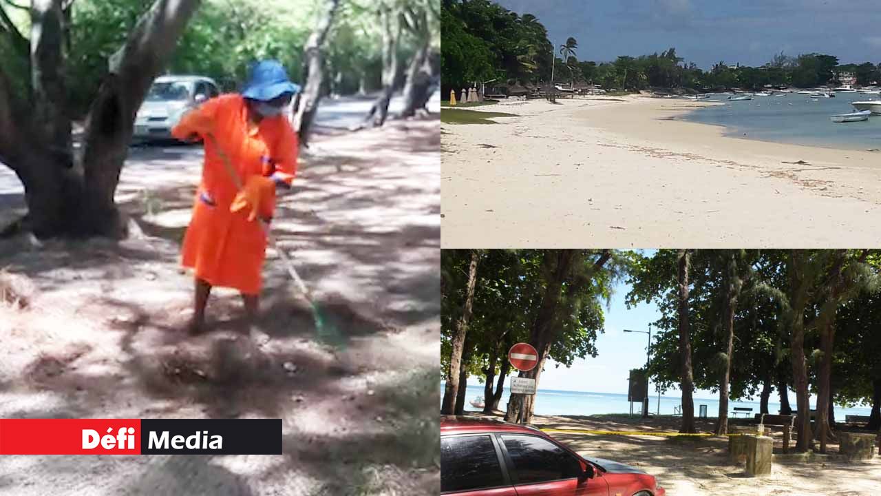 Rue et plage déserte à Mont-Choisy. Le temps semble s’être arrêté sur cette plage qui, d’habitude, est très fréquentée, du matin au soir.