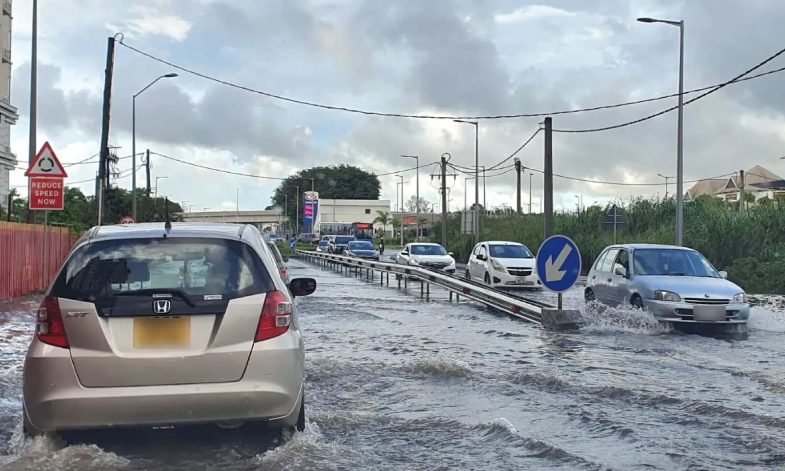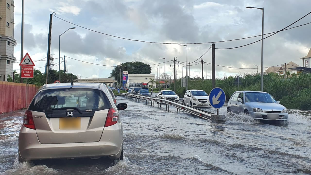 Importante accumulation d'eau à proximité du Phoenix Mall perturbant la circulation routière. Il est primordial de faire preuve de vigilance sur nos routes. Le pays est actuellement sous le coup d'un avertissement de fortes pluies valable jusqu'à 22 heures ce vendredi.