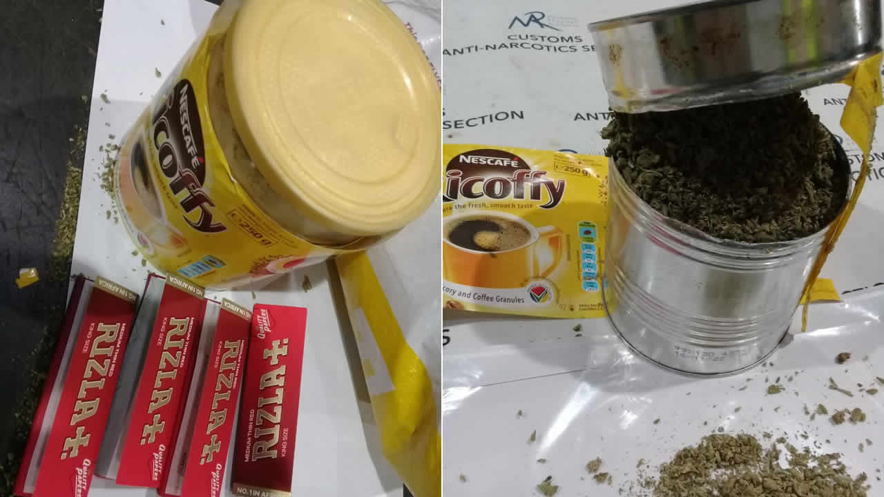 C’est le cas d’un colis adressé à une certaine Shakira Ajelasi, qui est arrivé mardi en provenance d’Afrique du Sud par le vol SA190. À l’intérieur, la Customs Anti-Narcotics Section de la Mauritius Revenue Authority a découvert 220 grammes de fleurs de cannabis séchées, ainsi que neuf paquets de cigarettes et plusieurs carnets de feuilles de papier à rouler. La drogue, d’une valeur marchande estimée à Rs 225 000, était cachée dans une boîte en fer blanc censée contenir du café. Comme le veut la procédure, l’Adsu a pris le relais.