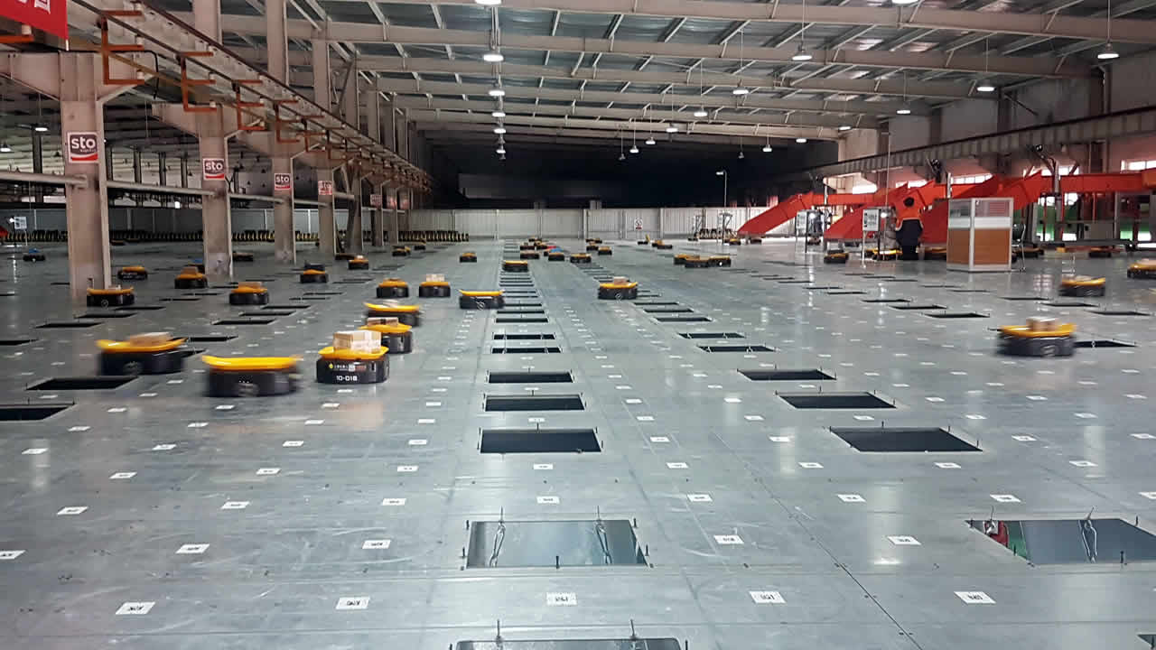 Parlant d’innovation, on ne peut passer sous silence l’apport de la robotique dans les affaires de la société logistique STO. Ici, ce sont les robots qui dansent dans un faible vrombissement pour départager les colis par région, cherchant l’endroit pour déverser leurs paquets, en sillonnant les codes estampillés sur les plaques métalliques.