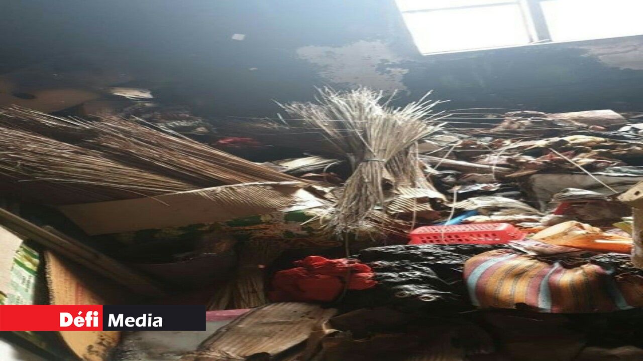 Une maison en tôle a été entièrement ravagée par les flammes. L’incendie s’est propagé et a atteint deux bâtiments en béton qui ont été partiellement brûlés.