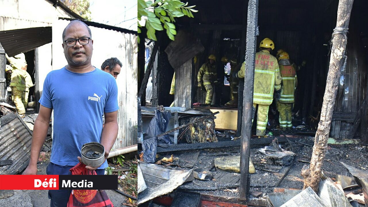 Steve La Fraisère et sa famille sont parmi l’une des cinq familles dont la maison en tôle et en bois a été ravagée par un violent incendie, hier matin, jeudi 11 juin à Tranquebar, Port-Louis.
