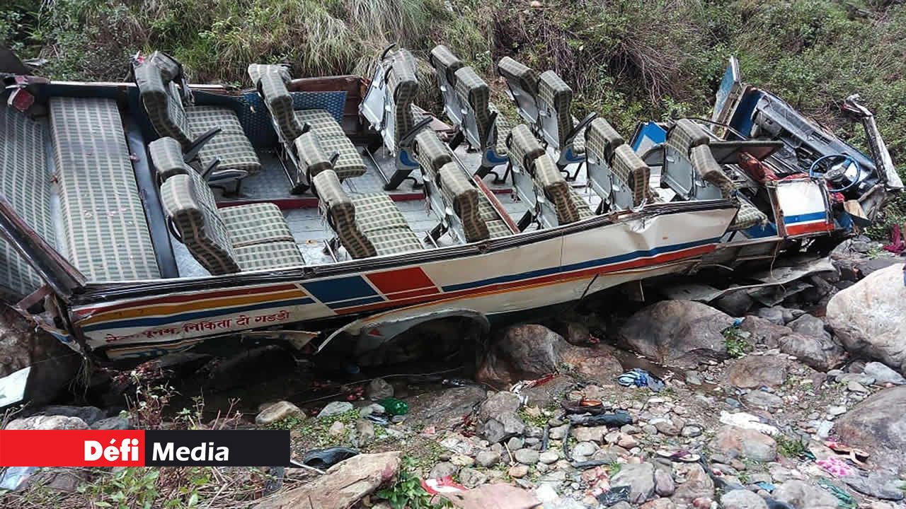 L'autocar, qui était plein à craquer, a vu son toit arraché dans l'accident dont les autorités ignorent pour l'heure les causes. Selon M. Joshi, "certains affirment que la partie extérieure de la route était un peu effondrée, ce qui aurait pu provoquer l'accident. Nous sommes encore en train d'enquêter".