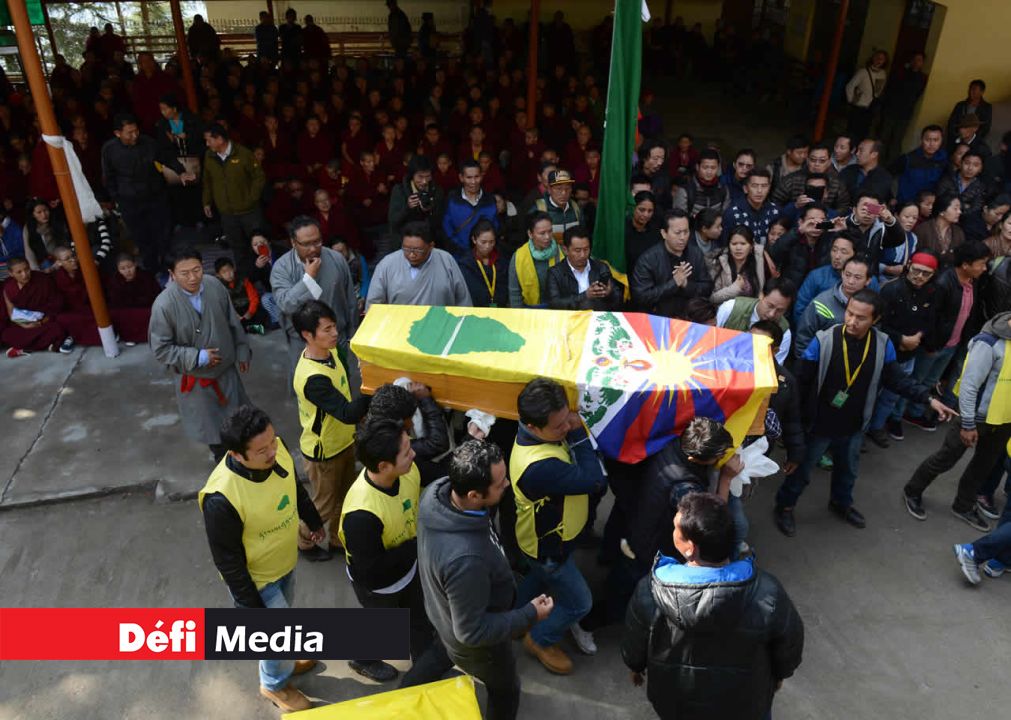 Des centaines de Tibétains ont assisté à une séance de prières à McLeodganj, siège du gouvernement tibétain en exil dans la banlieue de Dharamsala, avant de participer à la procession funéraire et la cérémonie de crémation.