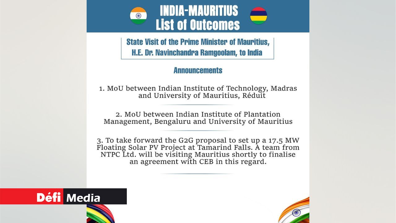 Le Premier ministre Dr Navin Ramgoolam et son homologue indien Narendra Modi ont discuté du partenariat stratégique renforcé entre les deux pays. Ils ont identifié de nouvelles opportunités de collaboration. Des protocoles d’accord ont été échangés ce jeudi 11 septembre à Varanasi, en Inde.