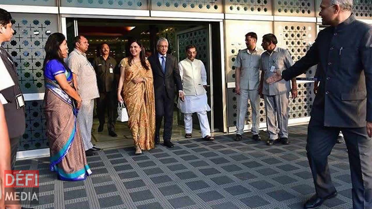 C’est accompagné de son épouse Kobita et d’une délégation que le Premier ministre a fait ce déplacement en Inde [voir notre diaporama]. Il s’agit de la première mission officielle en Inde de Pravind Jugnauth depuis son accession au poste de Premier ministre le 23 janvier 2017.