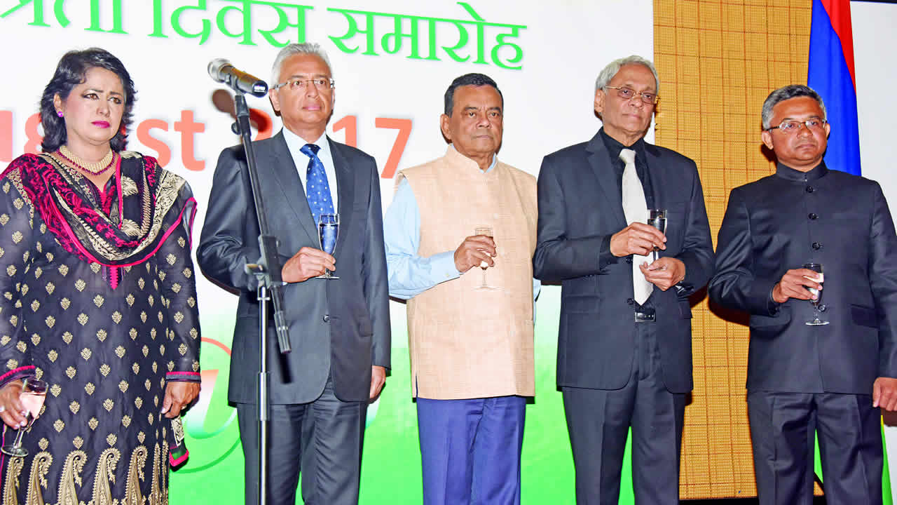 To commemorate the 70th anniversary of India’s Independence, High Commissioner of India, Shri Abhay Thakur, hosted a National Day Reception at the Le Meridien Hotel. H.E. Dr. (Mrs) Ameenah Gurib-Fakim, President of the Republic of Mauritius, Pravind Kumar Jugnauth, Prime Minister of the Republic of Mauritius, Cabinet Ministers, Leader of the Opposition, leaders of various political parties, senior officials, members of the Diplomatic Corps, and many other eminent personalities from various walks of life attended the Reception.