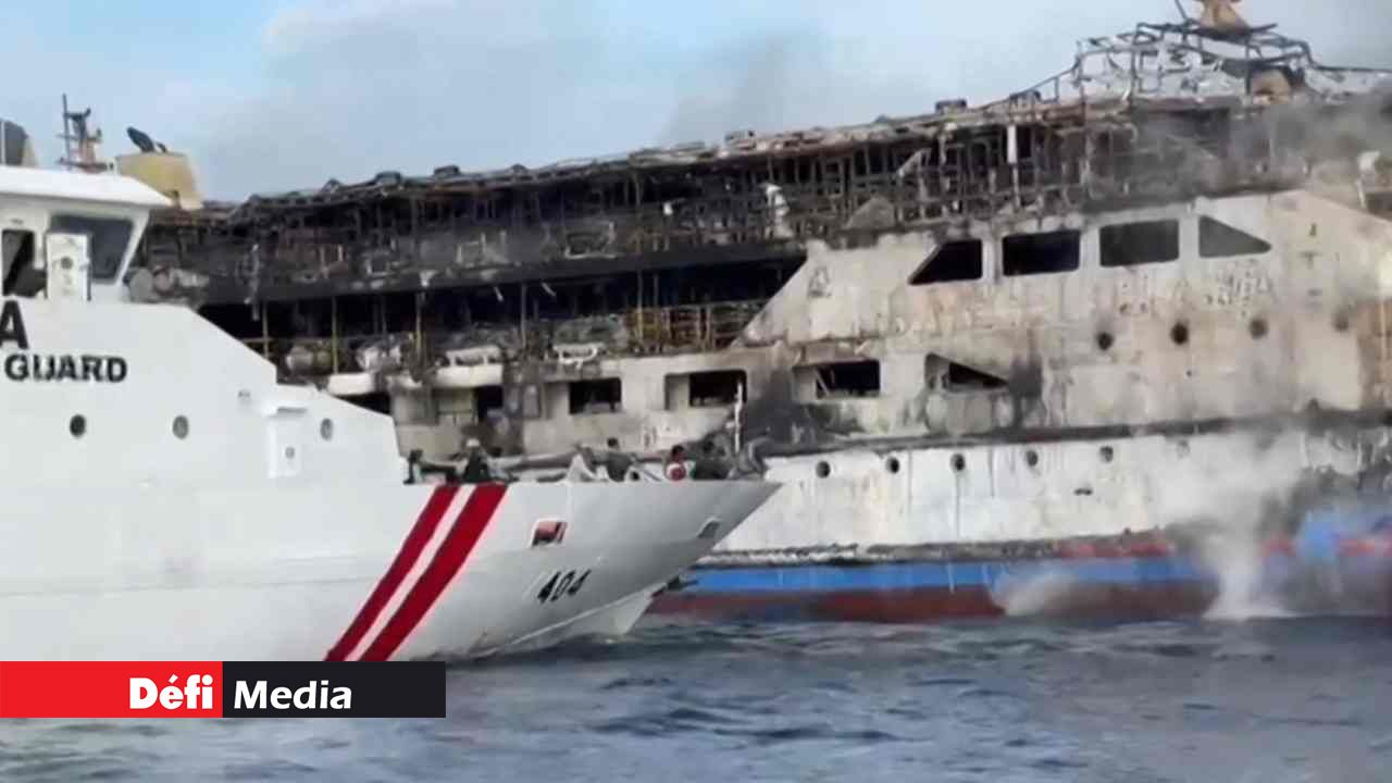 Une vidéo publiée par l'agence de recherche et de sauvetage de Manado montre un navire des garde-côtes pulvérisant de l'eau sur le ferry, d'où émanait encore de la fumée noire.