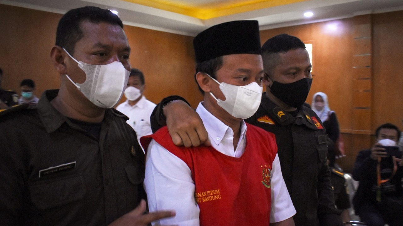 Herry Wirawan a été reconnu coupable d'avoir violé de façon répétée 13 adolescentes, toutes mineures -- qui ont ensuite donné naissance à neuf enfants -- par un tribunal de Bandung dans la province de Java occidentale.